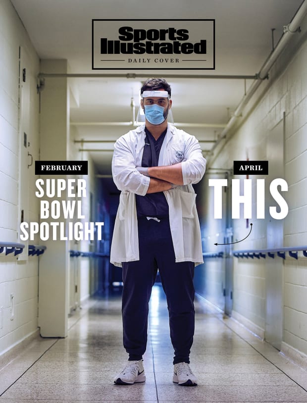 My first day back in the hospital was April 24. I felt nervous the night before, but a good nervous, like before a game, and I packed everything neatly: scrubs, white coat, extra pens, even a second pair of shoes that I could leave in my locker, knowing they were clean. I wasn’t aware the Chiefs had drafted a running back that night in the first round, even though I will block for my future teammate, Clyde Edwards-Helaire, from LSU.