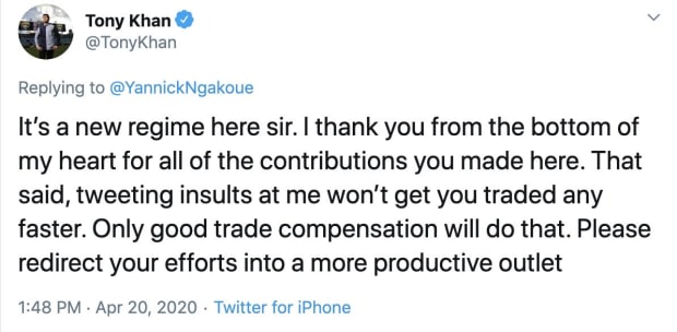 But “new regime” (which, again, is staffed by pretty much the same people as the old regime minus one person) implies that it’s a kinder, softer, or at least slightly-more-player-friendly regime. Taking to social media to taunt a prominent former player who you are currently jerking around is a funny way of branding (not ha-ha funny, more “funny” like the attempted jokes in this piece).
